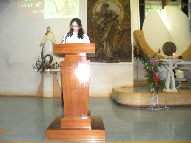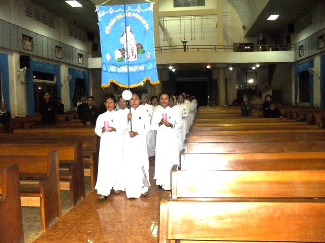 Thánh lễ vẫn khởi đầu bằng đoàn rước của các mẹ chị toán 3 và cha chủ tế từ cuối nhà thờ đi lên với tiếng hát cộng đoàn rộn ràng bài ca: “Mừng Thánh nữ”.