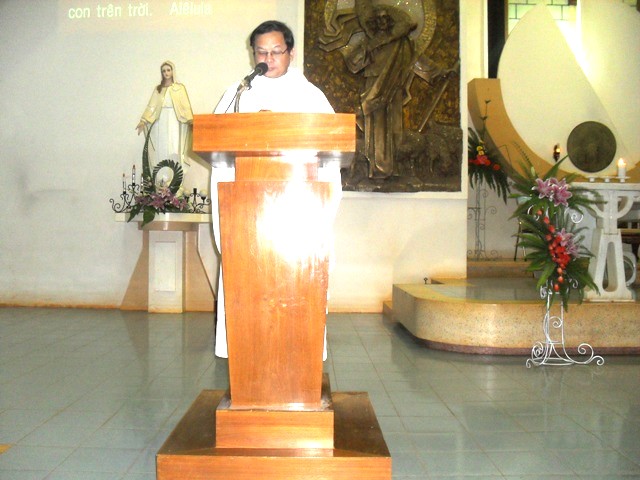 Trời mưa tầm tã, giáo dân tham dự không được đông đảo như mọi ngày, nhưng không vì thế mà Thánh lễ kém đi phần trang trọng..