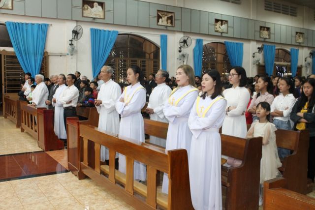 Cha quản xứ Giuse Trần Thế Thành chỉ dâng hai thánh lễ, lễ lễ tối thứ bảy lúc 19 giờ mừng trước lễ Thánh Gia, và 1 lễ lúc 4 giờ 45 sang Chúa Nhật với mục đích cả nhà cùng nhau đi dâng lễ, ngồi với nhau theo gia đình trong nhà thờ.