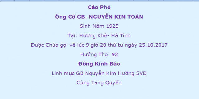 AI TÍN: ÔNG CỐ GIUSE HỒ ĐỨC LƯƠNG ĐÃ AN NGHỉ TRONG CHÚA