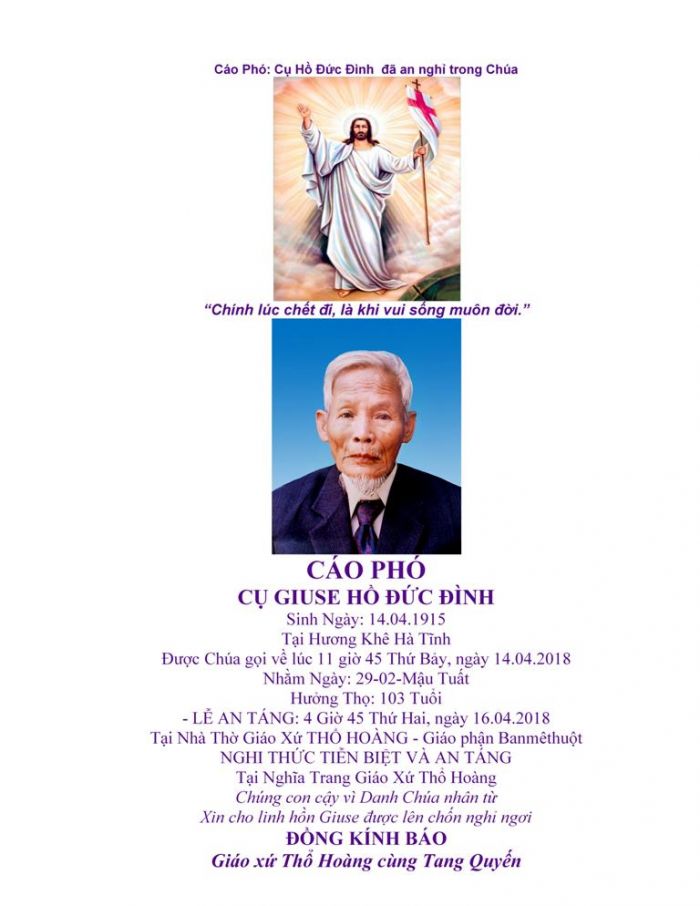 Ai Tín: Cụ Ông Giuse HỒ ĐỨC ĐÌNH đã an nghỉ trong Chúa