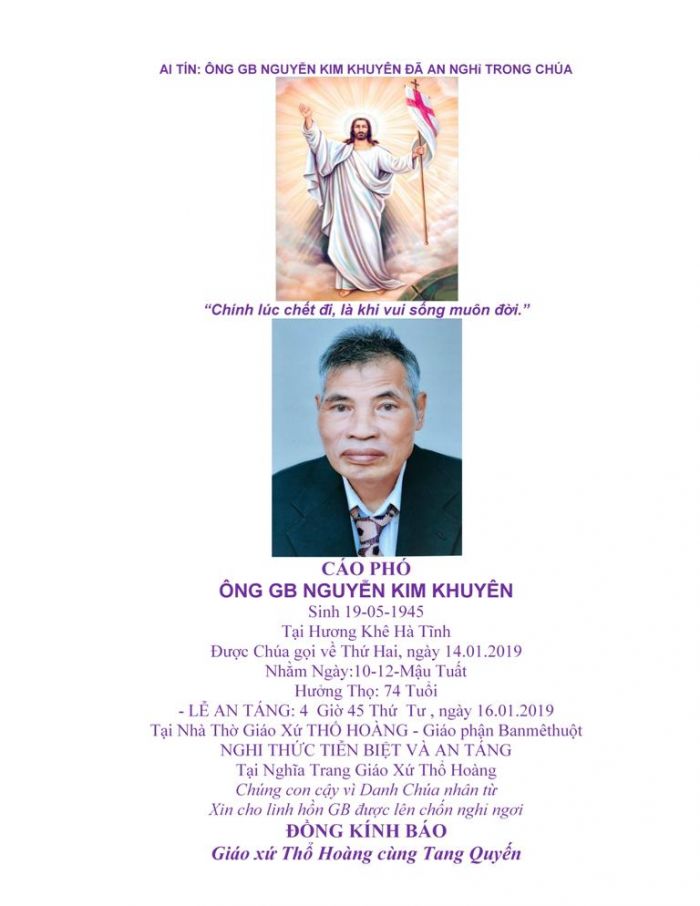 AI TÍN: ÔNG GB NGUYỄN KIM KHUYÊN ĐÃ AN NGHỉ TRONG CHÚA