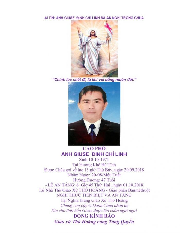 AI TÍN: ANH GIUSE ĐINH CHÍ LINH ĐÃ AN NGHỉ TRONG CHÚA