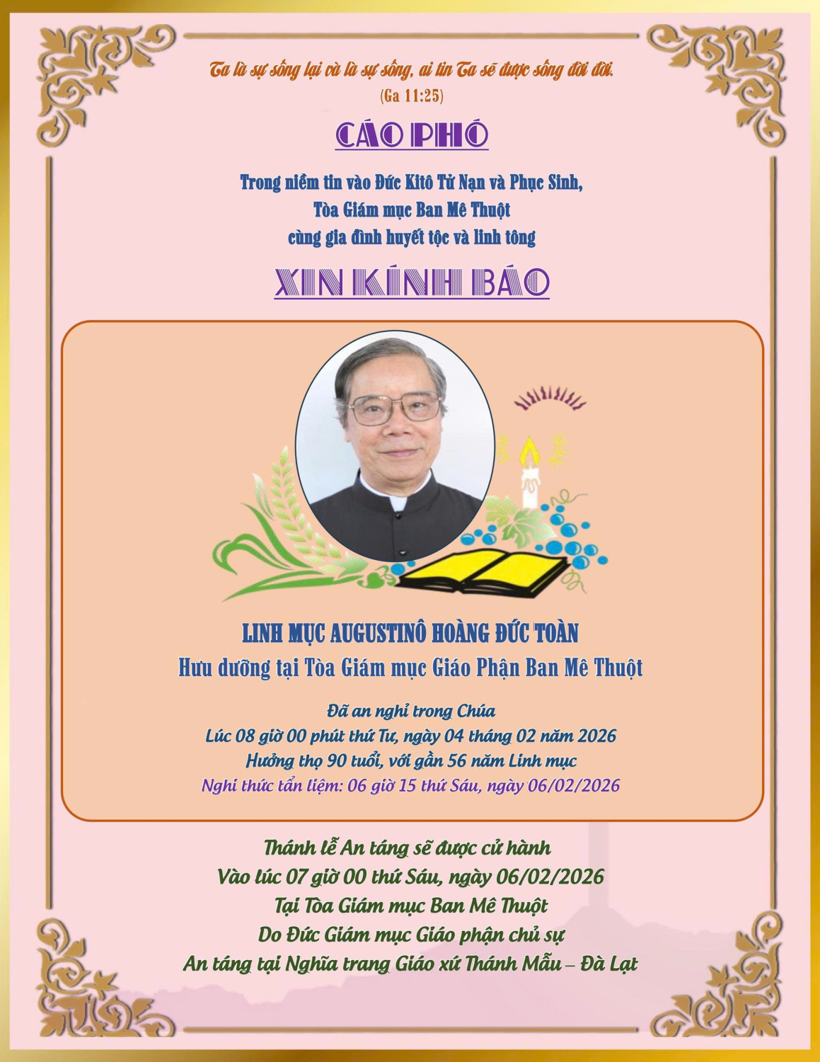 Cáo phó CHA AUGUSTINÔ HOÀNG ĐỨC TOÀN