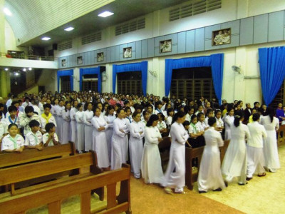 Lúc 19 giờ 30, Sau Thánh Lễ  thứ  ba dành cho thiếu nhi,  Giáo họ Phêrô Tự  đã chủ sự chương trình dâng hoa kính Mẹ Maria  tại đài Đức Mẹ