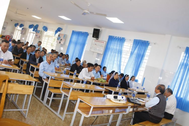 Cha GB. Nguyễn Minh Hảo quản xứ Giáo xứ Mẫu Tâm, trưởng ban Loan Báo Tin Mừng Giáo phận chủ sự cuộc họp cùng với cha Giuse Trần Thế Thành, quản xứ Giáo xứ Thổ Hoàng, trưởng nhóm vùng Tôma.