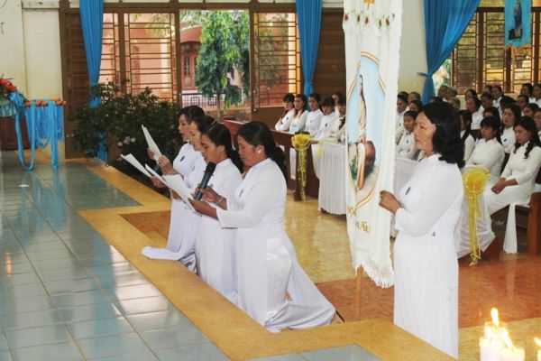 Sau bài giảng lễ, 4 chị đã được bầu vào ban điều hành mới lên tuyên thệ gồm chị Cecilia Trần Thị Mỹ Linh, Têrêxa Nguyễn Thị Ngọc Giáo, Maria Lê Thị Kim Khánh, Maria Ngô Thị Kim Nhung lên nhận trách nhiệm nhiệm kỳ 3 năm, 2015-2018, đồng thời Hội các bà mẹ vui mừng đón nhận 8 chị hội viên mới.