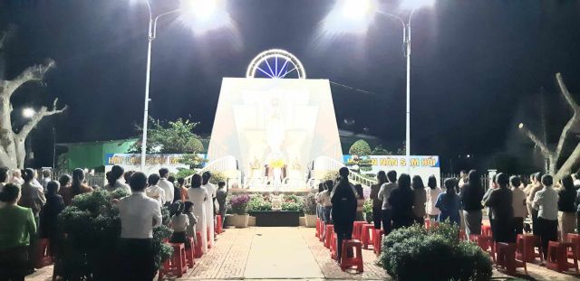 Hôm nay thứ bảy ngày 14 tháng 10, đúng 19 giờ 30 đông đảo giáo dân đã quây quần bên Mẹ cùng nhau lần chuỗi.
