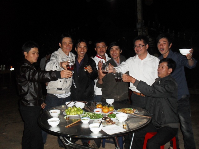 Trước khi đi vào buổi liên hoan nhẹ bên bếp lửa hồng, có hát Karaoke, có thịt nai nướng, có khoai tây chiên, có nồi cháo gà thơm phức với 1 chai rượu Remy, 2 chai vang đỏ Đà Lạt, nước ngọt và bia Sài Gòn đỏ, mọi người đi lại trò chuyện trao đổi ai thích thứ gì dùng thứ đó, bầu khí ngày xuân rất là đầm ấm : “ Kìa xem anh em sum họp một nhà, bao là tốt đẹp bao là sướng vui”