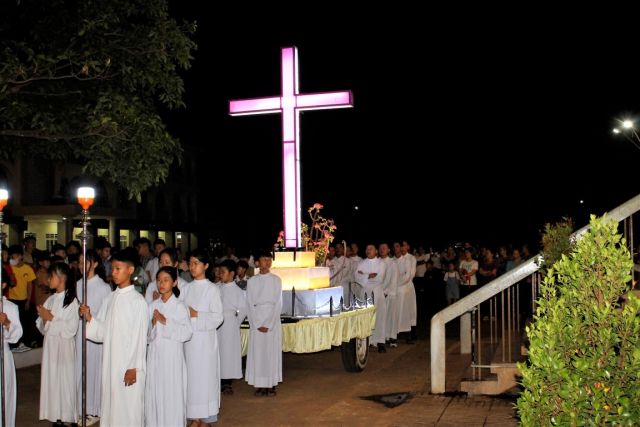 19 giờ tối thứ sáu Tuần Thánh, đông đảo giáo dân giáo xứ Thổ hoàng đã tuôn về khuôn viên nhà thờ Giáo xứ tham gia đi Đàng Thánh Giá trọng thể với chủ đề: LỜI CHÚA TRÊN 14 CHẶNG ĐÀNG THÁNH GIÁ đã được Lm Phanxicô Xaviê Nguyễn Hai Tính, SJ biên soạn.