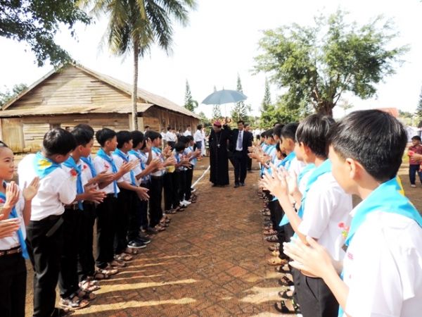 Sau khi một đại diện phụ huynh nói lên lời biết ơn và dâng lên Đức Giám mục một bó hoa tươi biểu hiện lòng yêu mến, một lần nữa Đức Giám mục nhắc nhở mọi người về đời sống đức tin: "tôi biết tôi tin vào ai", hãy sống đức tin và làm tăng trưởng đức tin bằng cách hãy trân trọng và tích cực lãnh nhận các Bí tích, Bí tích giải tội và Bí tích Thánh Thể.