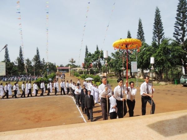 Đúng 9 giờ, đoàn đồng tế gồm 8 cha do Đức Giám mục Vinh Sơn chủ sự, cùng với các quý chức, đại diện các ban ngành đoàn thể, quý phụ huynh, những người đỡ đầu và các em sắp lãnh nhận Bí tích Thêm sức từ hội trường giáo xứ tiến vào nhà thờ trong tiếng hát hân hoan của toàn thể dân Chúa tham dự thánh lễ.