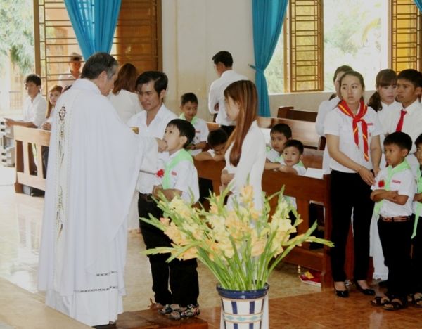 Thánh lễ cảm động và có lẽ gây nhiểu cảm xúc không chỉ cho các em nhưng cho mọi người tham dự thánh lễ hôm nay, đó là khi cả cộng đoàn cùng các em đứng lên tuyên bố từ bỏ tội lỗi và tuyên xưng đức tin. Đồng thời, một hình ảnh khó phai nhạt trong phần Hiệp lễ, là khi các em được bố mẹ của mình dẫn lên và cùng nhận lãnh Mình Máu Chúa.