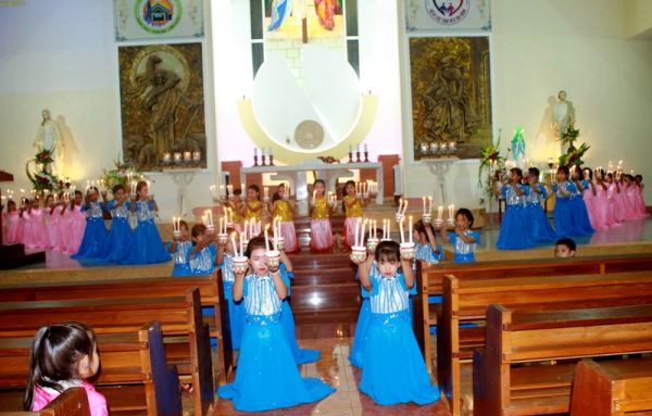 Sau giờ phút dâng mình cho Đức Mẹ, các em thiếu nhi bằng điệu múa xin dâng lên Mẹ toàn giáo xứ.