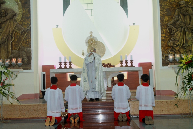 Kết thúc tâm tình dâng Mẹ, cha quản xứ chủ sự giờ chầu Thánh Thể trọng thể