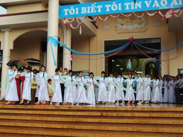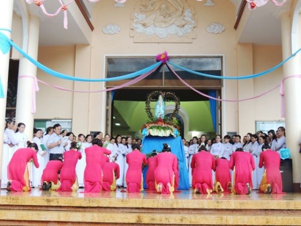 Các con hoa thiếu nhi thay mặt Giáo xứ dâng lên Mẹ Tâm nguyện được cùng với Mẹ hân hoan ra khơi đem Giê-su đi vào lòng đời,vào lòng thế giới để ban tặng Giêsu cho những người mình gặp gỡ,nhờ có Mẹ cùng nhịp bước mà mọi người trong Giáo xứ sẽ không còn lo âu sợ hãi, không còn băn khoăn khi phục vụ,không còn nghĩ đến những ích lợi cho riêng mình mà sẵn sàng dấn thân cùng Mẹ ra khơi phục vụ cho Tin Mừng Nước Chúa.