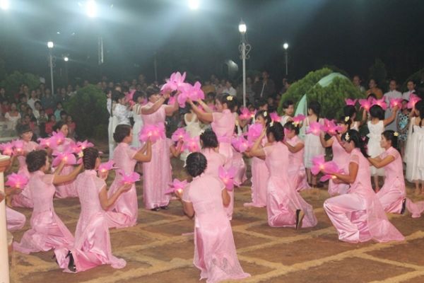 19 giờ 35 chương trình dâng hoa được bắt đầu bằng tâm tình của những người con giáo xứ hướng về Mẹ Giang Sơn, Mẹ giáo phận và thành kính dâng lên mẹ giáo phận thân thương, dâng hết mọi thành phần dân Chúa, xin Mẹ hằng đồng hành cùng giáo phận trong mọi biến cố vui buồn, thuận tiện hay gian khổ trong hành trình yêu thương phục vụ và truyền rao Tin Mừng.