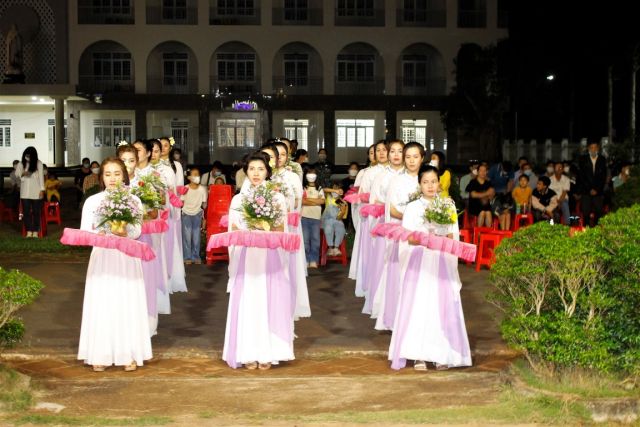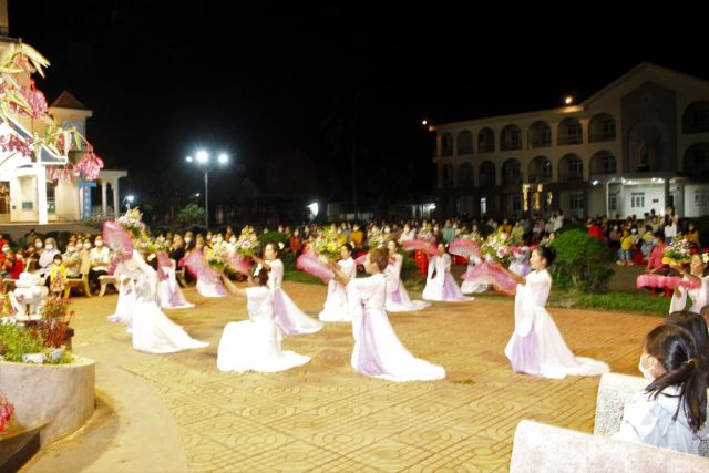 Tiếp đến, các bà mẹ giáo xứ đã dâng lên Mẹ tâm tình, mơ ước thầm kín đồng thời tôn vinh Mẹ theo màu sắc của các loài hoa.