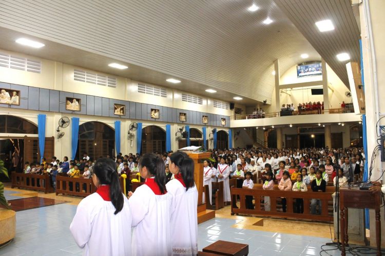 Sau lời nguyện Hiệp Lễ, cha Giuse một lần nữa chúc mừng lễ Giáo họ trị sở, đồng thời tỏ niềm vui cùng Giáo họ vì đã tổ chức Thánh lễ quy tụ được mọi thành phần , mọi giới gồm thiếu nhi, thanh trung niên, giới gia trưởng, các bà mẹ ….cùng tham gia vào Thánh lễ hôm nay.