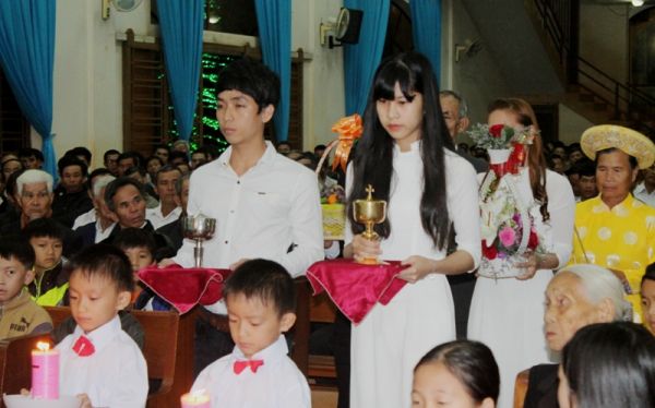 Mở đầu thánh lễ, cha quản xứ đã mời gọi các gia đình hãy dâng con cho Chúa, mọi người hãy chiêm ngắm một gia đình mẫu mưc, gia đình Thánh Gia là một gia đình như bao gia đình khác, nhưng là một gia đình mà từng thành viên luôn chu toàn bổn phận, một gia đình yêu thương và hiệp nhất, một gia đình lấy thánh ý của Chúa làm kim chỉ nam cho cả cuộc đời.