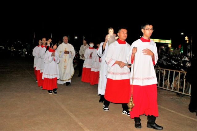 Hòa vào niềm vui cùng toàn thế giới hân hoan mừng kỷ niệm Con Thiên Chúa xuống thế làm người. Lúc 19 giờ thứ bảy ngày 24 tháng 12 năm 2022, trong cái gió lạnh của Cao Nguyên, cha quản xứ Giuse Trần Thế Thành đã cùng với cộng đoàn giáo dân quy tụ trong nhà thờ, ngài đã hướng dẫn giúp cộng đoàn sốt sắng hướng về trời cao để hiệp lòng nguyện xin Người Con của Đức trinh nữ Maria ngự đến trong lòng mỗi người, đồng thời giúp mọi người hay mở lòng mình ra sẵn sàng đón tiếp Đấng là DẤU CHỈ của lời cam kết yêu thương mà Chúa dành cho dân Người, DẤU CHỈ được mang tên gọi Emmanuel “Thiên Chúa ở cùng chúng ta”. Chúa Giêsu là DẤU CHỈ, Hội Thánh là thân thể của Người nên cũng phải là DẤU CHỈ, bởi thế người tín hữu cũng phải là DẤU CHỈ, từ đó giúp người tín hữu phải cố sống vượt qua lối sống đạo “vụ hình thức”. Hãy sống tâm tình Noel là mọi việc ta làm với mục đích để tôn vinh Chúa chứ không phải đánh bóng cho bản thân