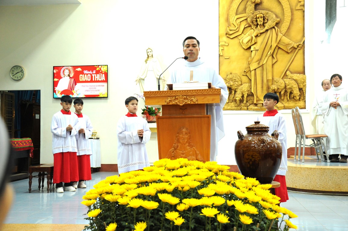 Trong giờ phút linh thiêng đón Giao Thừa, cộng đoàn Giáo xứ quy tụ về ngôi thánh đường thân thương để hiệp cùng Giáo hội Việt Nam tạ ơn Thiên Chúa vì năm cũ đã qua, cầu bình an cho năm mới và phó thác gia đình trong tay Chúa. Đây là dịp nhìn lại muôn ơn lành, dâng lên Chúa những vui buồn, khó khăn, đồng thời xin Ngài chở che và chúc lành cho năm mới.