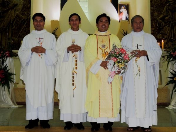 Cùng hiệp dâng thánh lễ đồng tế hôm nay có cha Giuse Trần Thế Thành quản xứ Thổ Hoàng, cha Phê-rô Cao Tiến Hà quản xứ Đức Lệ cùng với cha quê hương Giuse Trần Hữu Hoan dòng Chúa Cứu Thế.