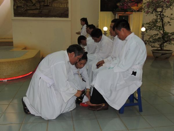 Sau bài giảng cha quản xứ Giuse đã cử hành nghi thức rửa chân cho 12 bạn trẻ của giáo xứ.