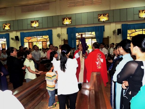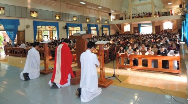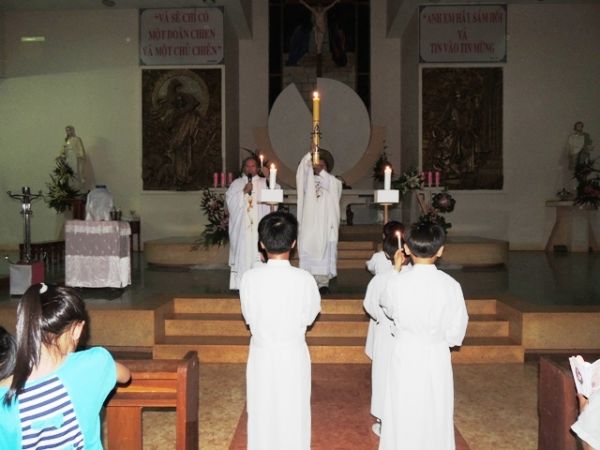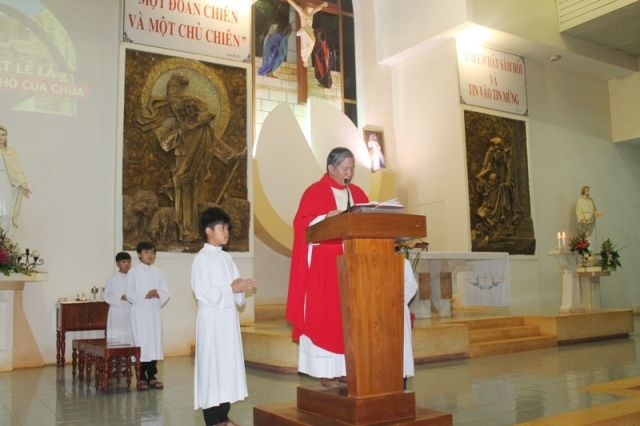 Thánh lễ chiều nay do cha quản xứ Giuse Trần Thế Thành chủ tế, cùng đồng tế với ngài có cha G.B. Nguyễn Văn Huân SVD.