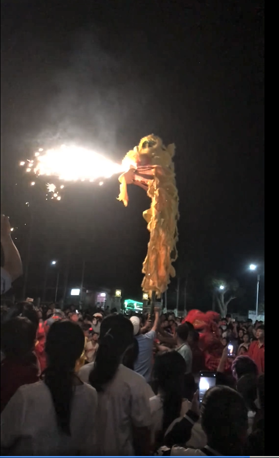 Sau tiết mục múa lần chào mừng cha quản xứ, thì 4 đội lân đã giao lưu với nhau rộn ràng.