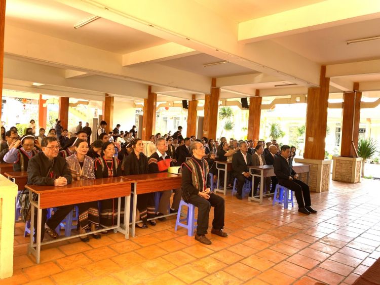 Đoàn xe nối nhau lên đường tiến về Thành Phố Ban Mê Thuột, 8 giờ 30 đoàn đã có mặt tại Giáo xứ Mẫu Tâm, là Trung Tâm Sắc Tộc, là Giáo xứ tòng nhân Mẫu Tâm tại 70 Y Ngông, phường Tân Tiến, Tp. BMT, tỉnh Đăk Lăk.