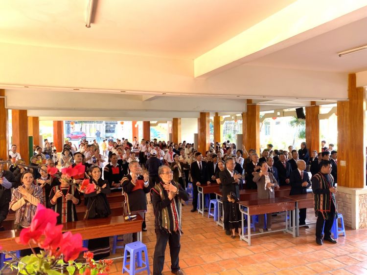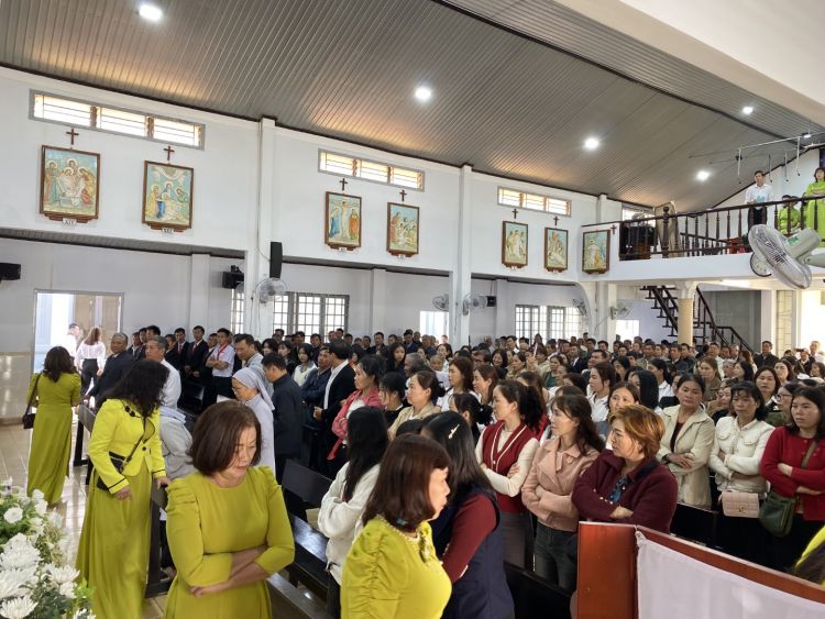 Sau phần giới thiệu và chia sẻ giao lưu giữa hai Giáo xứ, bà con Giáo xứ Thổ Hoàng tiếp tục lên xe tiến về nhà thờ Giáo xứ Chính Nghĩa tại 52/36 Hồ Tùng Mậu, phường Tân Tiến, Tp. BMT, tỉnh Đăk Lăk.