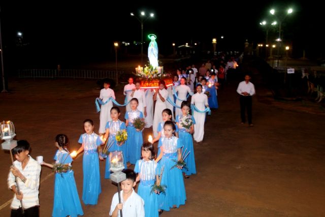 Dâng nến: Dâng lên Mẹ những ngọn nến lung linh, ngọn lửa của yêu thương, cháy sáng tình yêu Thiên Chúa…