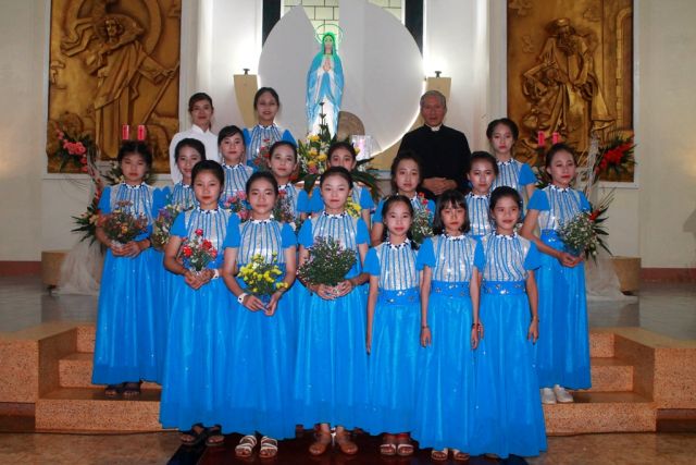 Lúc 19 giờ tối 31 tháng 06-2019, mặc dầu trời đổ mưa từ 18 giờ tới 21giờ mới dứt, nhưng cũng khá đông người quy tụ về nhà thờ tham dự giờ suy niệm Kinh Mân Côi và dâng hoa kính Đức Mẹ, bế mạc tháng Hoa.