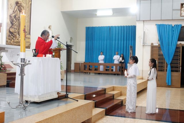 Cũng trong thánh lễ nầy ngài đã ban Bí Tích Rửa Tội, Bí Tích Thêm Sức cho chị Vũ Hiền Nguyên gia nhập Kitô Giáo.
