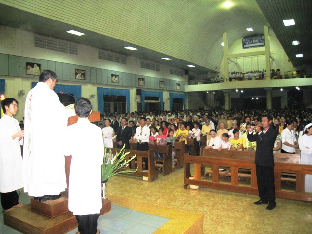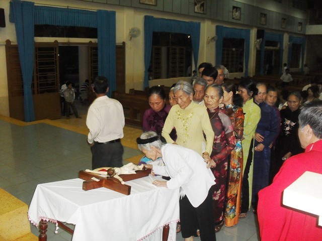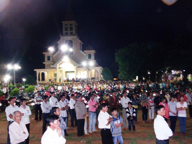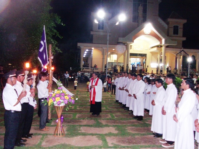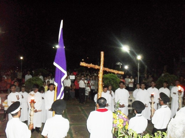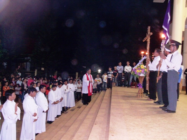 Trời mát dịu một cách lạ lùng, trong khuôn viên nhà thờ đã có khoảng 1000 giáo dân ( không kể thiếu nhi và nhi đồng) tập trung về để hôn kính và tham dự đêm đi Đàng Thánh Giá trọng thể kỷ niệm ngày thương khó của Chúa