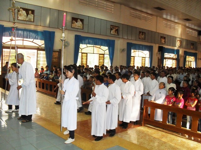 Đúng 16 giờ 30,Thánh Lễ Tiệc Ly khai mạc Tam Nhật Thánh đã được long trọng bắt đầu với đoàn rước từ cuối nhà thờ đi lên trong âm vang bài ca nhập lễ : "Vinh quang của ta là Thánh Giá Đức Ki Tô...."
