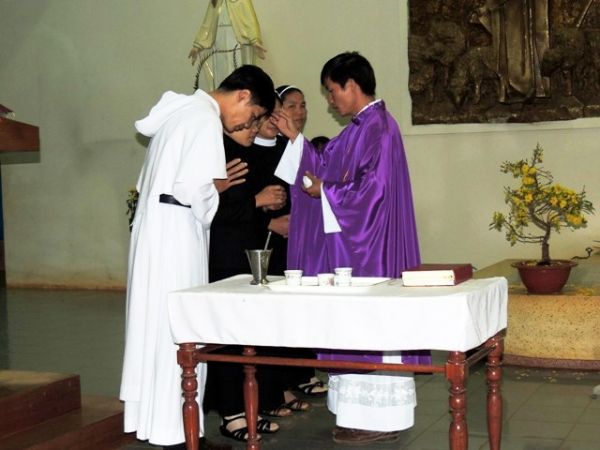 Thánh lễ do hai cha Louis và cha Phêrô đồng tế, mở đầu thánh lễ cha chủ tế Louis đã nói lên ý nghĩa và tầm quan trong của mùa chay thánh,một dịp thuận lợi giúp con người nhìn lại mình để giao hòa cùng Thiên Chúa.