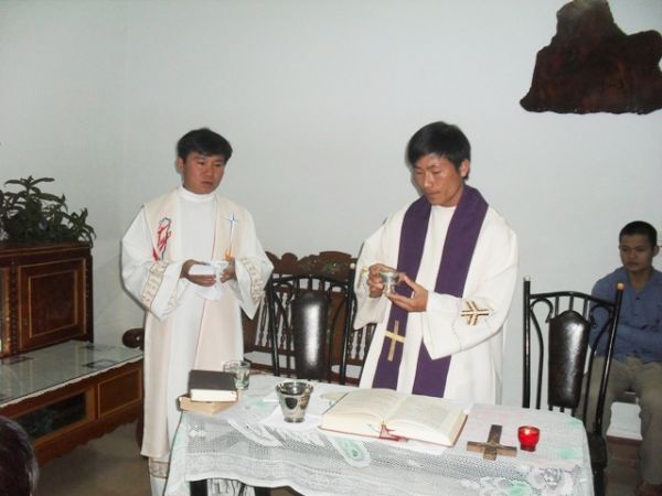 Một đêm thật đầm ấm, khi mọi người được quy tụ bên nhau hiệp dâng Thánh lễ cùng với cha Phêrô Nguyễn Trung Hiếu chủ tế và cha G.B Nguyễn Kim Hướng đồng tế, cha Phê rô Nguyễn Trung Hiếu đã dùng lời của Chúa Giêsu đã mời gọi:" Ai muốn theo Thầy phải từ bỏ chính mình vác thập giá hằng ngày mà theo" ( Lc 9,23)