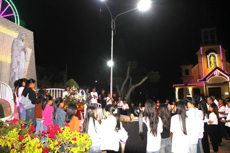 Đêm nay, đêm mùa thu Cao Nguyên, giáo dân Giáo xứ Thổ Hoàng hiệp cùng với toàn thể Giáo Hội kết lên muôn lời hợp dâng lên Mẹ diễm kiều.