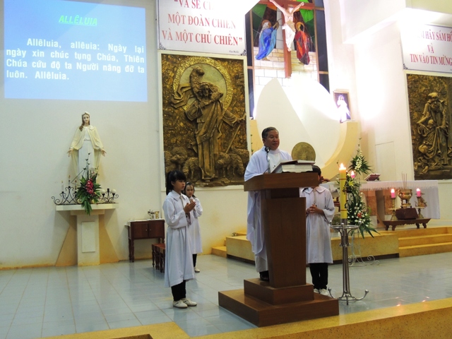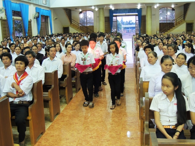 Lời hát ca nhập lễ vang lên thì cũng là lúc đoàn rước tiến vào nhà thờ với niềm vui được thổ lộ nơi khuôn mặt mọi người. Ban hành giáo và các ban chấp hành của các ban ngành trong giáo họ tay cầm nhánh hoa huệ đại diện cho cả cộng đoàn đến dâng lên cho Thánh Quan Thầy với thật nhiều tâm tình trong cuộc sống.