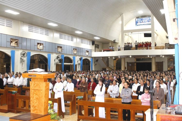 Kết thúc, ngài nhắn nhủ các gia đình rằng đây là lễ trọng, lễ buộc, nên 19 gìờ tối nay còn một thánh lễ.để cho mọi người trong giáo xứ đều được tham dự thánh lễ.