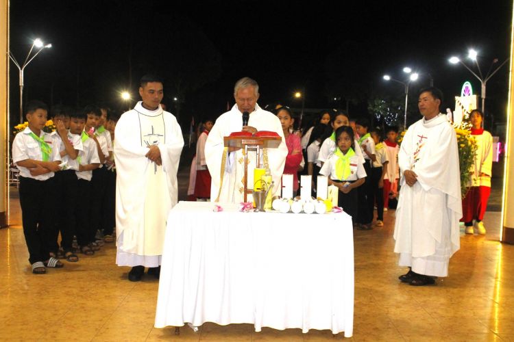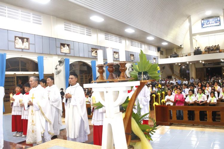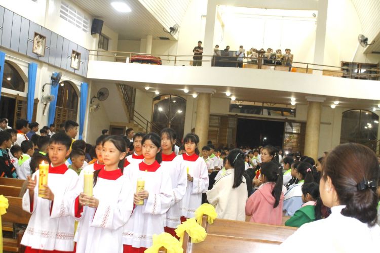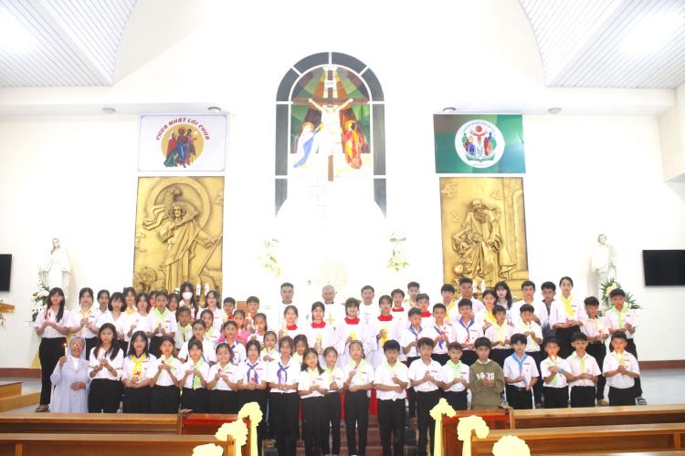 Cùng đồng tế có cha phó Augustino Phan Minh Danh và cha Phêrô Nguyễn Trung Hiếu, SDB, với sự có mặt đông đảo của các em thiếu nhi, đặc biệt nhóm ơn gọi của giáo xứ.