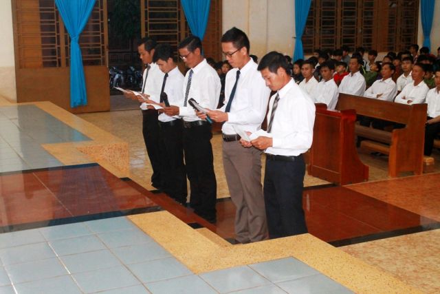 Trong thánh lễ nầy 5 vị ban chấp hành mới của đoàn Thanh Trung Niên tuyên hứa phục vụ đoàn thể và giáo xứ nhiệm kỳ 4 năm....