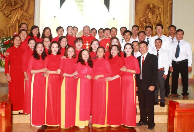 Kết thúc thánh lễ quý cha đã ghi hình lưu niệm với ban chấp hánh TTN và ca đoàn.
