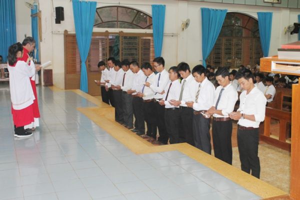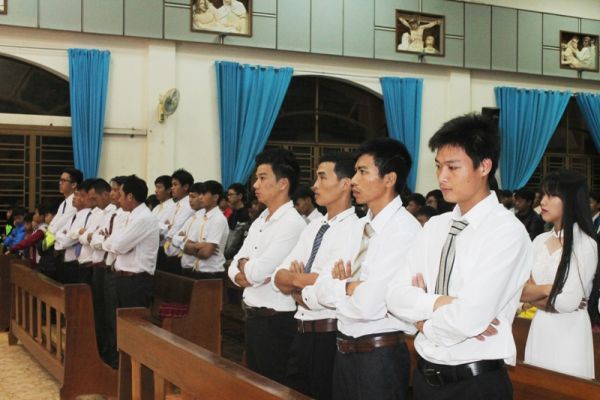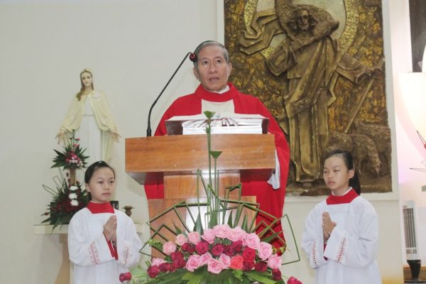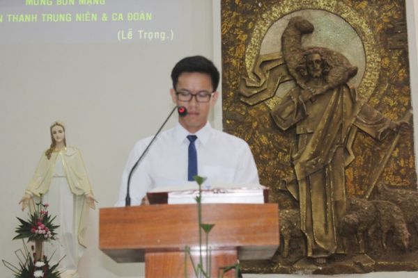 Mở đầu thánh lễ, cha Giuse đã gởi lời chúc mừng tới Đoàn Thanh Trung Niên, ca đoàn, cùng toàn thể những người đã chọn hai thánh làm bổn mạng, đặc biệt những anh trong ban chấp hành mới sẽ tuyên hứa nhận nhiệm vụ phục vụ đoàn Thanh Trung Niên của giáo xứ trong thánh lễ hôm nay.
