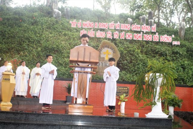 Mưa dầm dề gió lạnh suốt cả ngày, nhưng cũng rất đông giáo dân đã quy tụ về Đồi Thánh Tâm với Lòng Thương Xót Chúa.