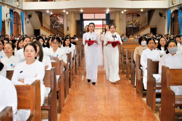 Mở đầu thánh lễ cha Giuse đã mời gọi cộng đoàn cầu nguyện cho các hội viên trong toán đã qua đời được hưởng ơn thánh của Chúa, đồng thời cùng cầu cho các hội viên đang hoạt đông luôn có một lòng yêu mến Chúa, biết dấn thân phục vụ và luôn biết noi gương thánh nữ loan bao tin vui Phục sinh cho những người thân cận của mình, cho chồng con và cho bạn bè và lối xóm……