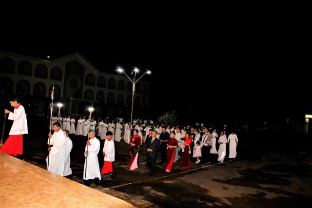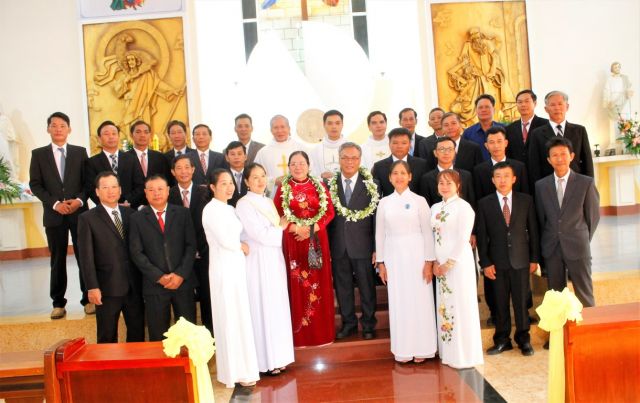 Cùng đồng tế với ngài, có cha quản xứ Giuse Trần Thế Thành và cha Phaolô Trần Khắc Tuân, cha cùng khóa cũng đã từng về làm mục vụ tại Giáo xứ 1 tháng.