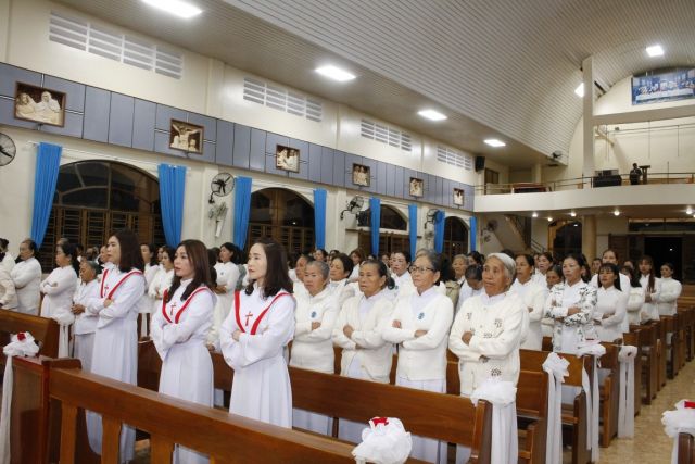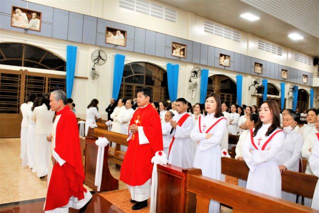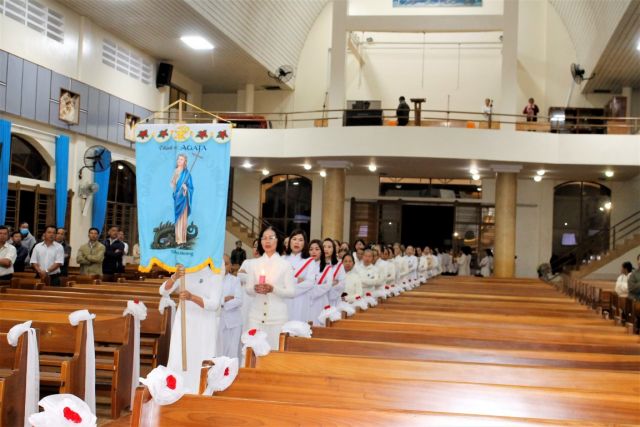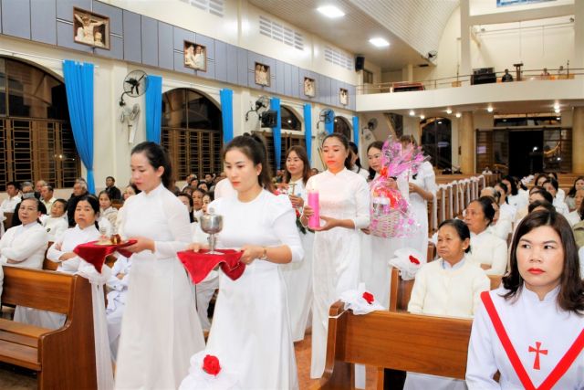 Đoàn rước đẹp, trang nghiêm từ cuối nhà thờ bắt đầu cho thánh lễ trọng thể mừng kính thánh nữ.
